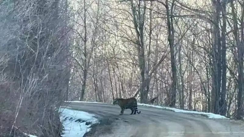 최근 야생동북범이 재차 천교령에서 모습을 드러냈다.