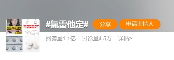 일부 네티즌들은 로라타딘을 ‘1년 사계절의 생명약’으로 여긴다. 항주시제3병원의 허해파 의사는 로라타딘은 항히스타민제이자 수용체 대항제이며 일반적인 부작용은 졸음이며 일반적으로 밤에 잠들기 전에 복용하는 것을 권장했다. 또한 심장 기저질환이 있는 환자나 운전을 하는 환자, 특히 음주중 항히스타민제를 함께 복용하면 인지 및 정신운동 장애를 악화시킬 수 있다고 당부했다.
