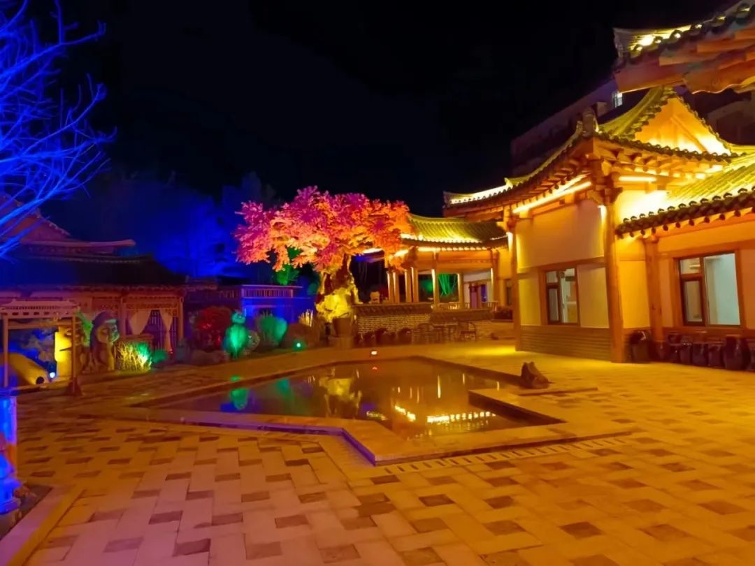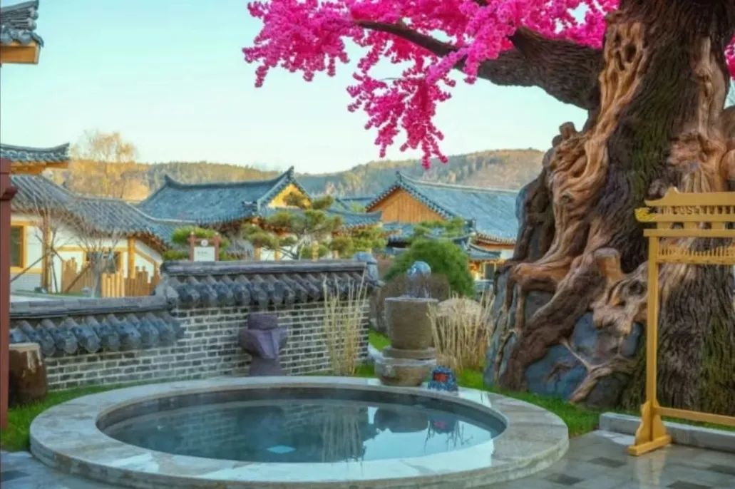 온천은 전체적으로 옛날 조선족식 풍격으로 꾸며졌으며 밤에 불이 켜지면 독특한 절경을 자랑합니다.