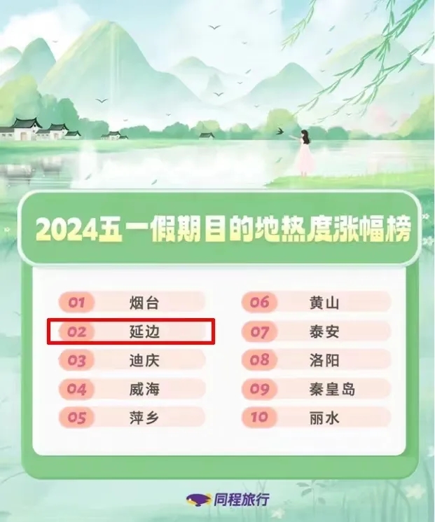 4월 12일 동정려행(同程旅行)에서는 <2024년 '5.1'절 련휴 려행추세보고>를 발부했는데 2024 '5.1'절 련휴 목적지 인기순위에서 연변이 2위를 차지했습니다.