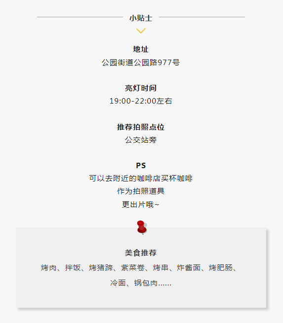 맛있는 음식을 드시고 출발하여 연길에 도착하면 왕훙벽이 연변대학 정문 맞은편에 위치해 있습니다. 이는 연길의 특색 랜드마크 가운데 하나입니다. 어둠이 깔리면 알록달록한 네온사인이 탄막식 가게 간판을 비추고 있어 본지방 사람들은 물론 외지 관광객들이 반드시 찾아오는 핫플레이스로 부상하고 있습니다.