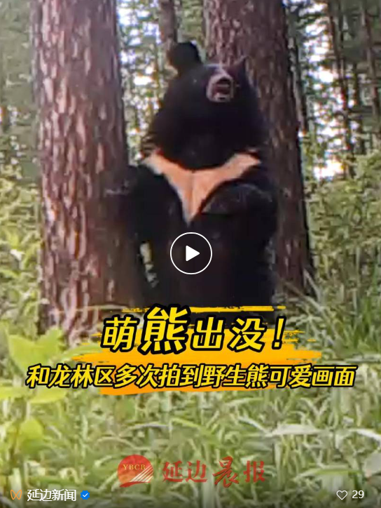 야생 곰은 흔히 사나운 생물로 여겨지지만 실제로는 귀여운 면도 있다. 최근 화룡림업유한회사는 화룡림구에서 포착된 '곰 출몰' 동영상을 발표하여 사람들에게 야생 곰의 귀여운 면을 보여주었다.