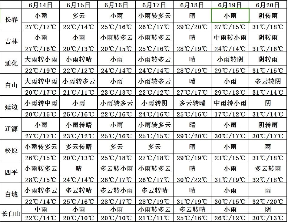 전반적으로 볼 때 비가 오면서 14~17일 길림성 기온은 지속적으로 낮을 것으로 보이며 18~19일 쯤 기온이 다시 오를 것으로 예측된다.
