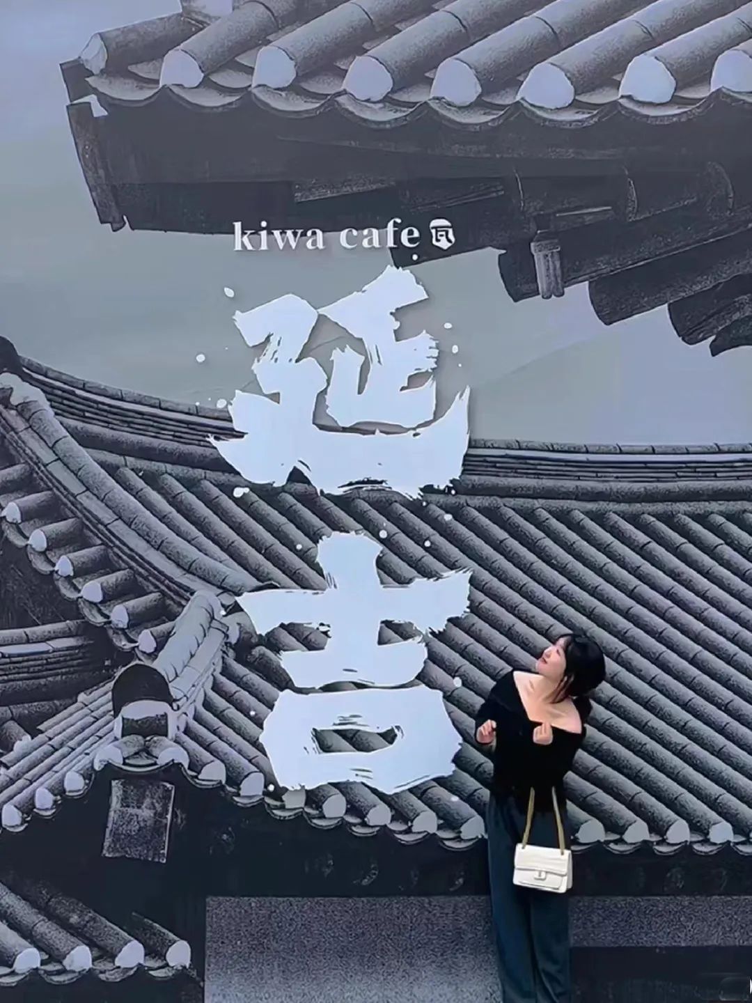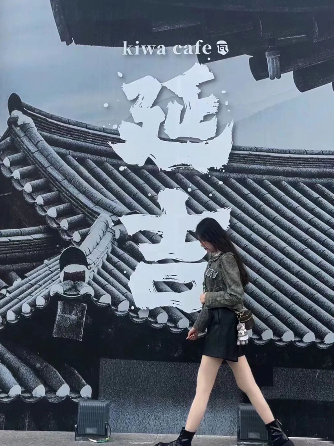대천성의 한 커피숍 외벽을 찾는 관광객들도 적지 않다. 배경은 조선족 전통 풍격의 건축물이고 '연길' 글자를 절묘하게 덧붙여 복고적인 느낌과 분위기를 연출해 연길의 도시 자신감을 충분히 보여주고 있다.
