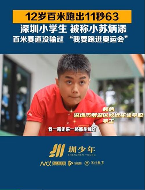 최근 2024년 광동성 소학생 륙상선수권대회에서 심수시 라호구 치원실험학교의 12세 소년 한신이 무서운 속도로 재차 우승을 차지했다.