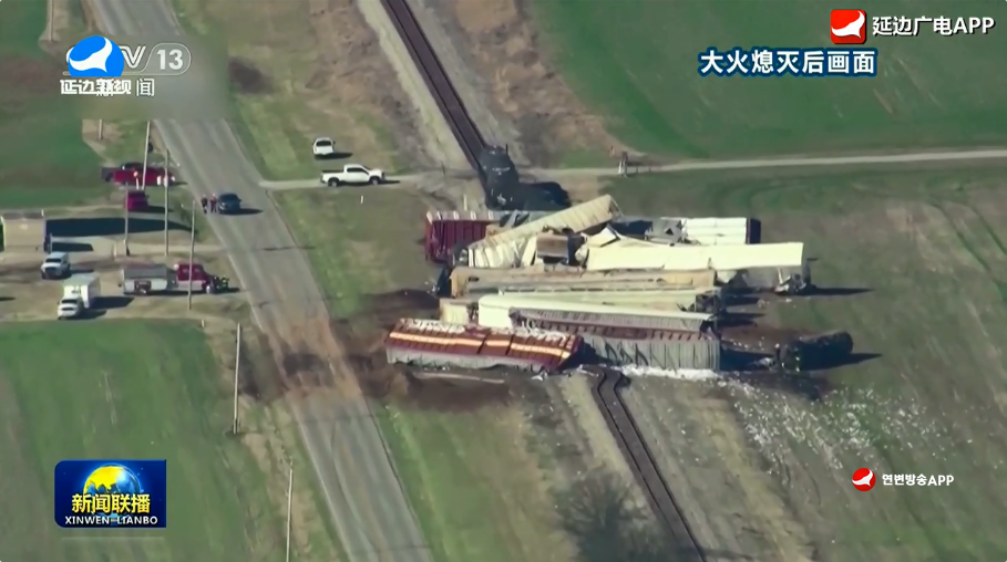 미국의 한 화물렬차 탈선 화학품 적재 렬차 차간에 화재 발생