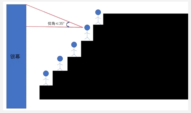 다음으로 경추피로를 피하기 위해 관객과 스크린 수평선 사이의 앙각은 35°를 넘지 않아야 한다.