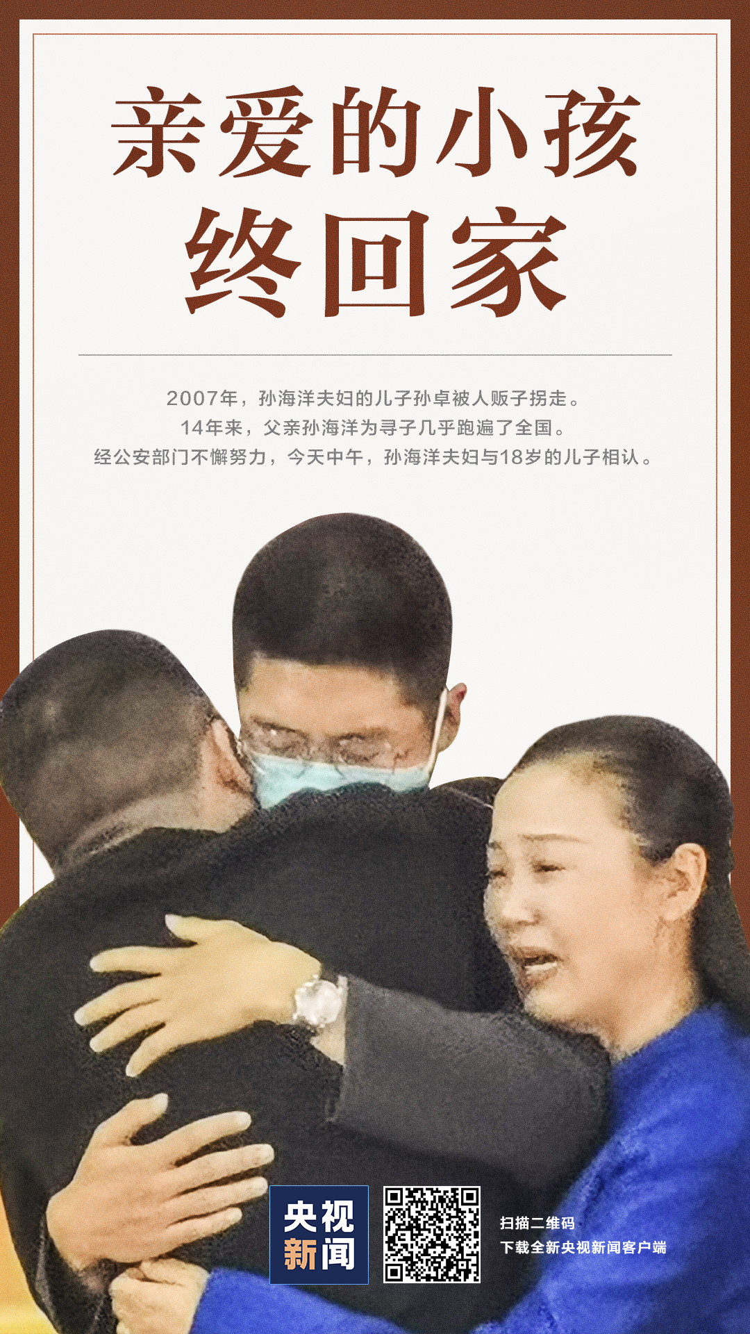 14년 전, 영화 <디어리스트>중 인물원형인 손해양은 4살 미만의 아들을 유괴당했다. 이때부터 손해양은 아들을 찾기 위한 긴긴 려정에 올랐다. 최근 사건은 중대한 돌파를 가져왔다. 손해양의 아들을 찾은 것이다. 12월 6일 점심, 광동성 심수시 공안기관은 손해양 부자를 위한 상봉행사를 조직했다. 이들 가족은 14년57일만에 다시 만나게 된 것이다.
