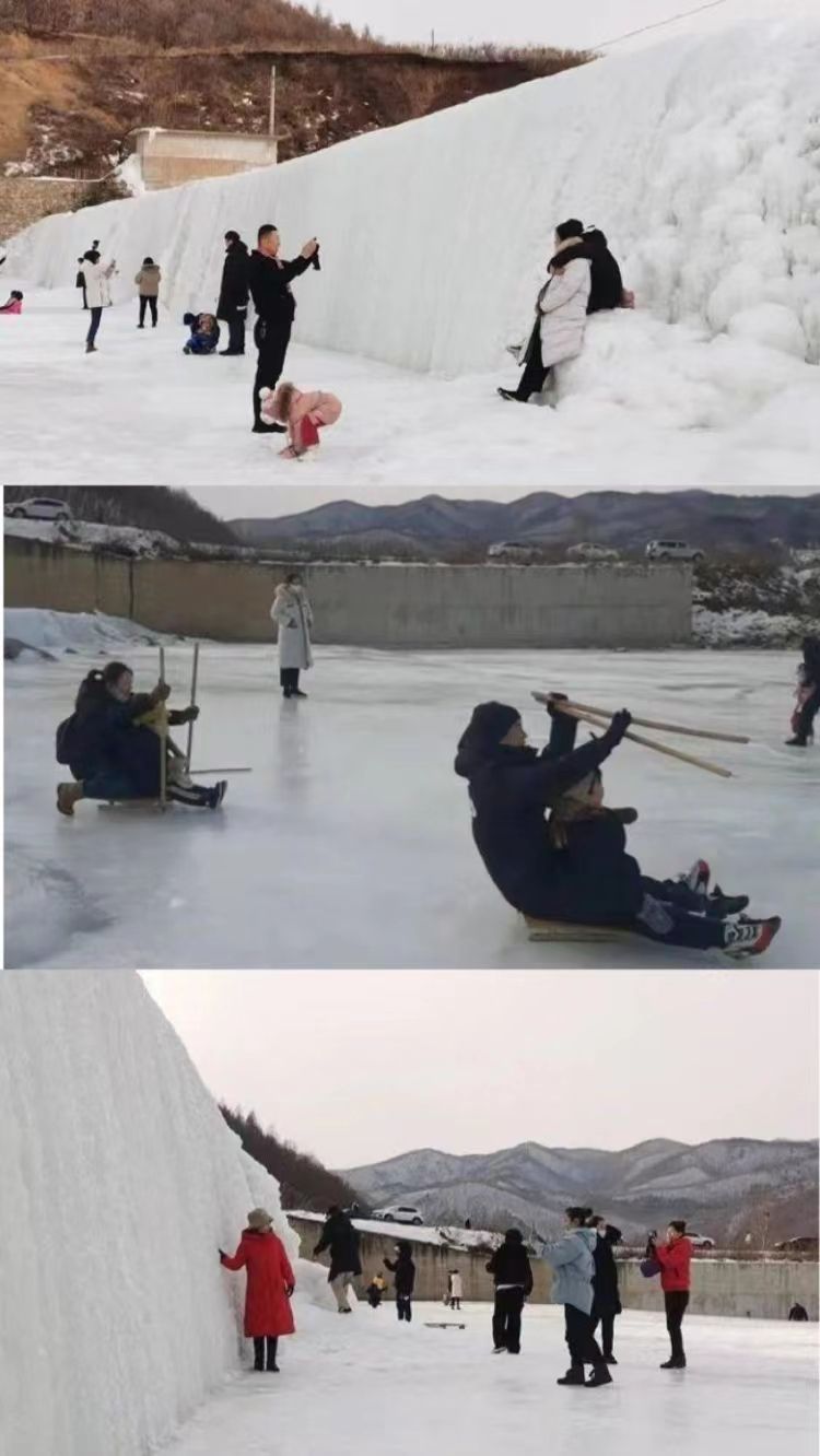 겨울에 들어서서 발전소 언제의 하천이 얼어 제형의 얼음폭포를 이루어 산으로 둘러싸인 해란강수역에 색다른 경관을 더해주고 있다.