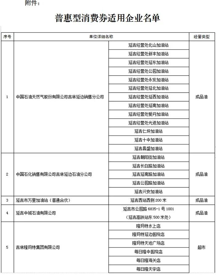 이번 정부소비권은 연길시정부에서 195만원(54600분)을 투입했다. 그중 상업무역류 소비권이 166.5만원(42600분)인데 100원을 소비하면 15원 할인하고 200원을 소비하면 30원을 할인하며 400원을 소비하면 60원을 할인하고 500원을 소비하면 75원을 할인한다. 완제품유류 소비권은 24만원(10000분)인데 100원을 소비하면 15원을 할인하고 200원을 소비하면 30원을 할인한다. 약품류 소비권은 4.5만원(2000분)인데 100원을 소비하면 15원을 할인하고 200원을 소비하면 30원을 할인한다.