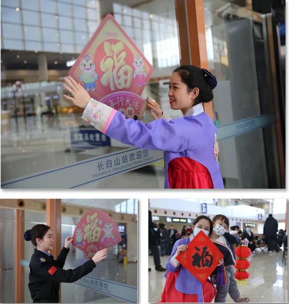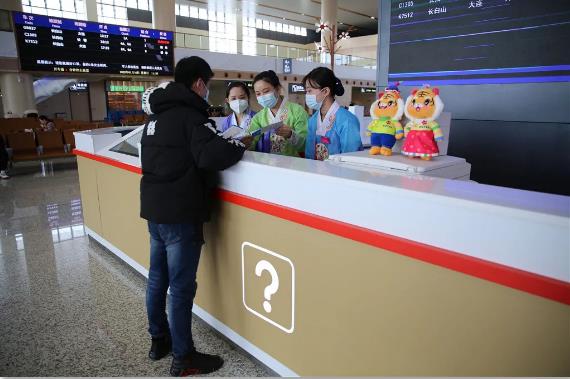1월 23일, 등롱을 높이 걸고 창문 장식용 전지를 나란히 붙인 장백산역 대합실은 경사스럽고 상서로운 명절분위기가 다분했다. 6시 40분, 장백산역은 첫번째 려객을 맞이했다. ‘여러분, 1메터 간격을 유지하고 마스크를 착용하기 바랍니다. 신분증을 미리 준비하고 차례 대로 줄을 서서 역에 들어오세요.” 검표원 왕묵은 재빨리 긴장하면서도 질서 있는 업무에 투입되였다.