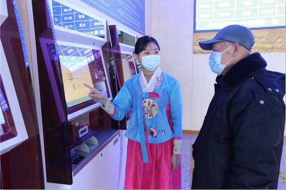 장백산역은 연변조선족자치주에 위치해있는데 소수민족려객들에게 보다 훌륭한 서비스를 제공하게 위해 ‘다섯송이 얼음꽃’은 휴식시간을 리용해 조선어를 련습함으로써 려객들에게 이중언어서비스를 제공하고 있다. 또한 애심자원봉사자소조를 설립했는데 민족복장을 차려입고 로인 등 중점 려객들에게 편리한 매표서비스를 제공하고 있다.