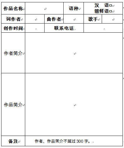 음악작품 투고는 이메일 격식으로 주최측 지정메일에 발송해야 한다. 투고시 제목에 '작품명+작자+핸드폰번호'를 포함해야 하며 '연변조선족자치주 창립 70주년 창작곡 공모표'도 제공해야 한다.