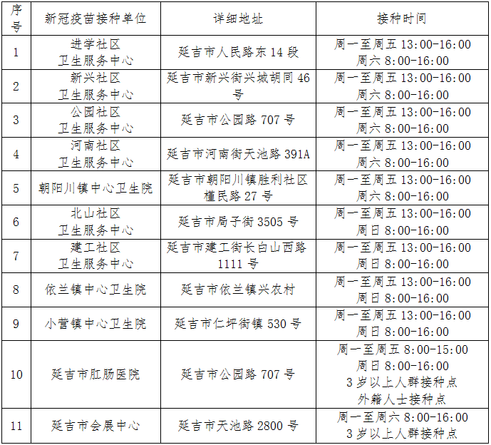 연길시 신종 코로나 바이러스 백신 접종사업정황에 따라 2월 18일부터 연길시 각 신종 코로나 바이러스 백신 접종지점에서 계속해 접종사업을 전개한다. 광범한 시민들은 가까운 접종지점에 가서 백신을 접종하기 바란다.