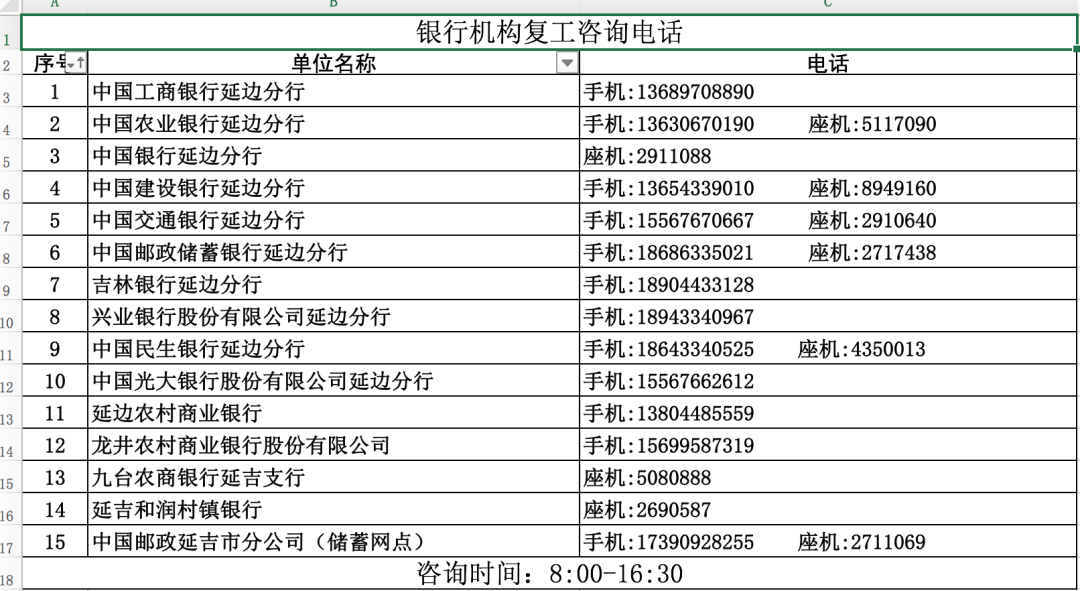 [편리정보] 각 은행 영업 재개 자문전화 (收藏)