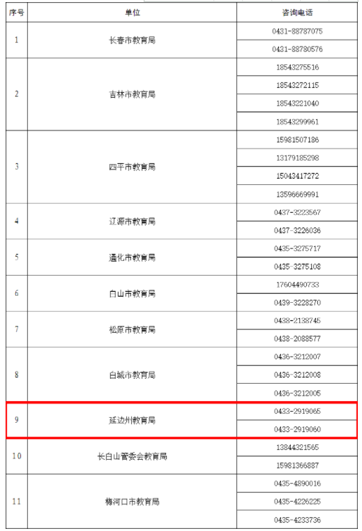 사회의 관심에 진일보 응답하고 소통경로를 원활히 하며 광범한 사생과 학부모들이 교육계통 전염병예방통제정책을 문의하고 건의를 제기하며 요구를 반영하는 데 편리를 도모하고저 길림성 각 지역 교육관리부문과 각 고등학교에서는 열선봉사전화를 개통했다. 아래 전화번호를 발표한다.