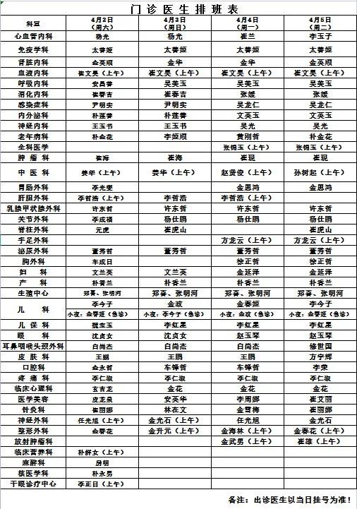 4월 1일 연변대학부속병원은 통지를 발부하여 <생산생활 점차 질서있게 회복할 데 관한 연길시 통고>요구에 따라 4월 2일부터 진찰을 질서있게 회복한다고 밝혔다. 통지는 또 4월 2일부터 4월 5일까지 청명절 련휴기간 급진, 발열문진은 24시간 진료를 한다면서 당직표를 공개하고 진료시 주의사항 등을 제시했다.