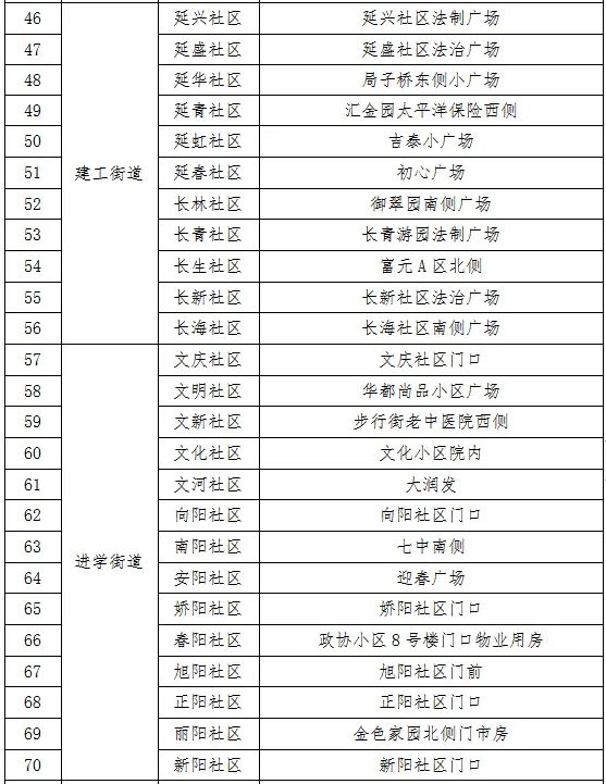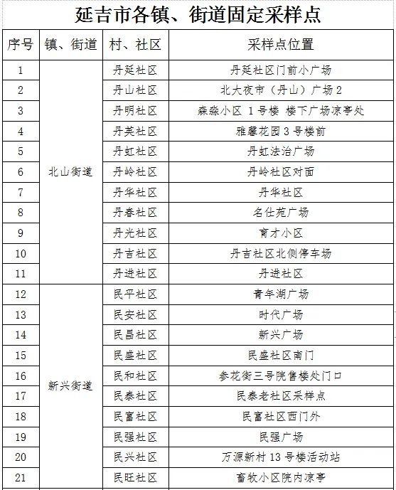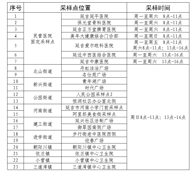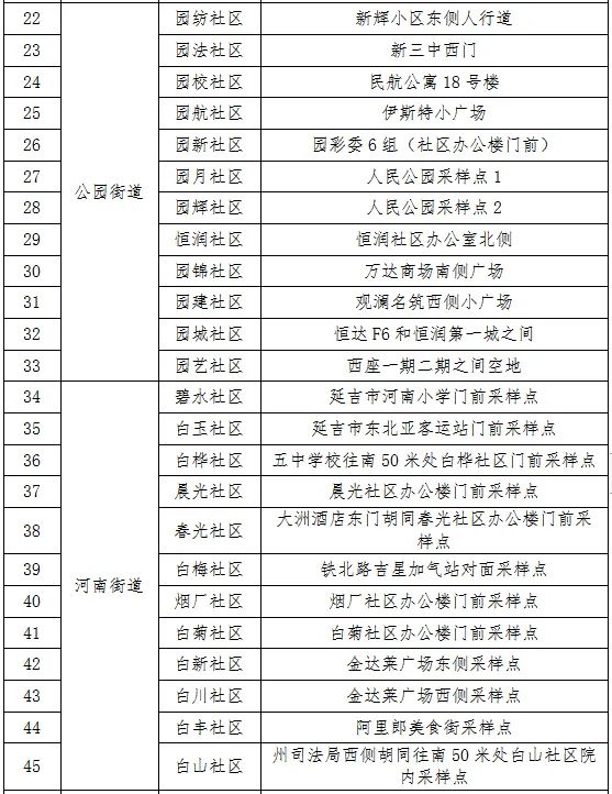 일터복귀 생산재개를 총괄적으로 추진할 데 관한 성, 주, 시의 사업요구에 따라 최근 전염병 예방통제 형세와 결부해 '규범적이고 질서있으며 점차적으로 개방'하는 원칙을 견지하면서 4월 12일부터, 기존의 79개 고정 핵산검측 샘플채취장소의 기초상에서 7개 고정 샘플채취 장소와 17개 일요일 샘플채취 장소를 증설하는 동시에 신종 코로나 바이러스 백신 접종 장소를 회복한다. 구체적 통지는 아래와 같다.