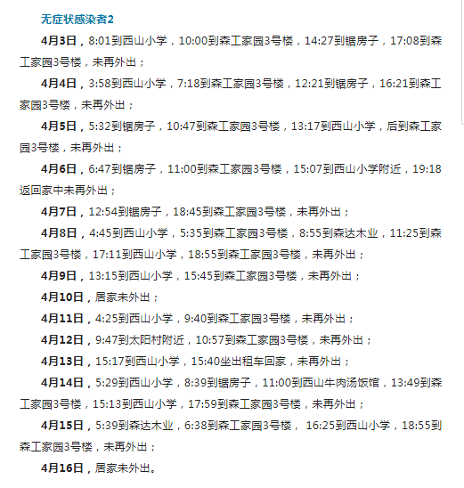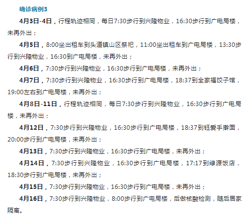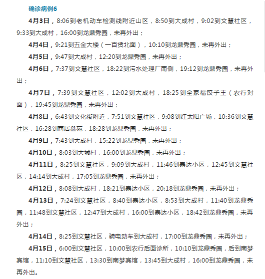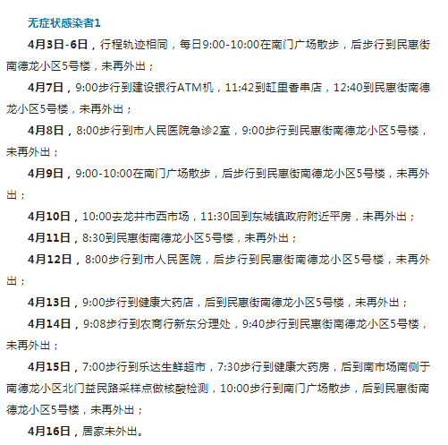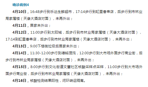 4월 16일 0-24시, 화룡시에서 신종 코로나 페염 확진병례 4례(경증형), 무증상 감염자 3명이 보고되였다. 새로 증가한 확진병례와 무증상 감염자의 이동경로는 다음과 같다.
