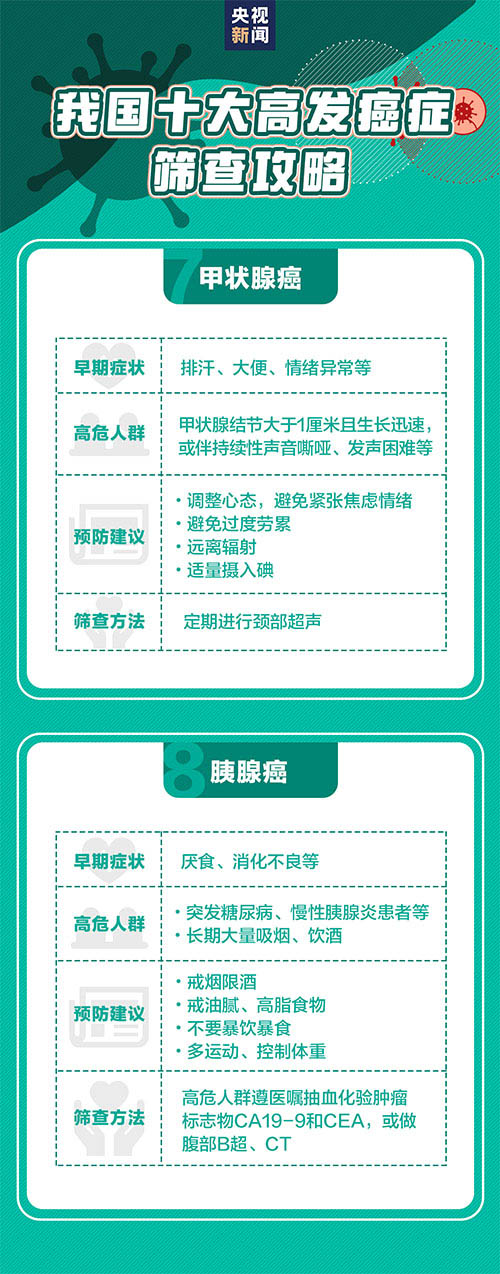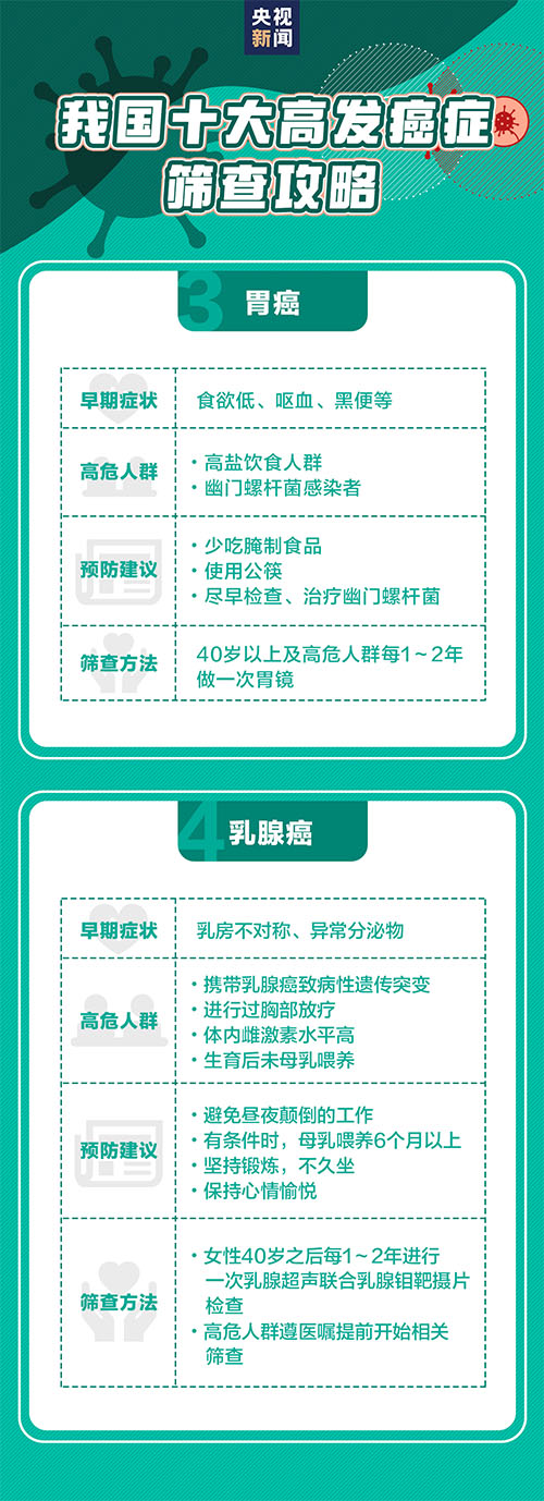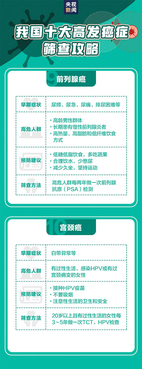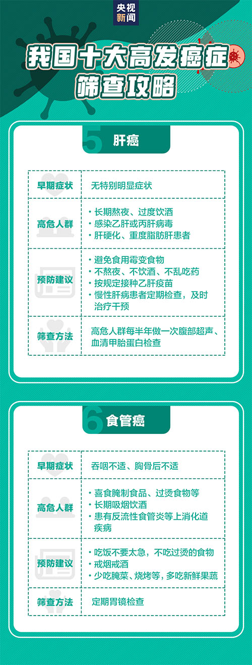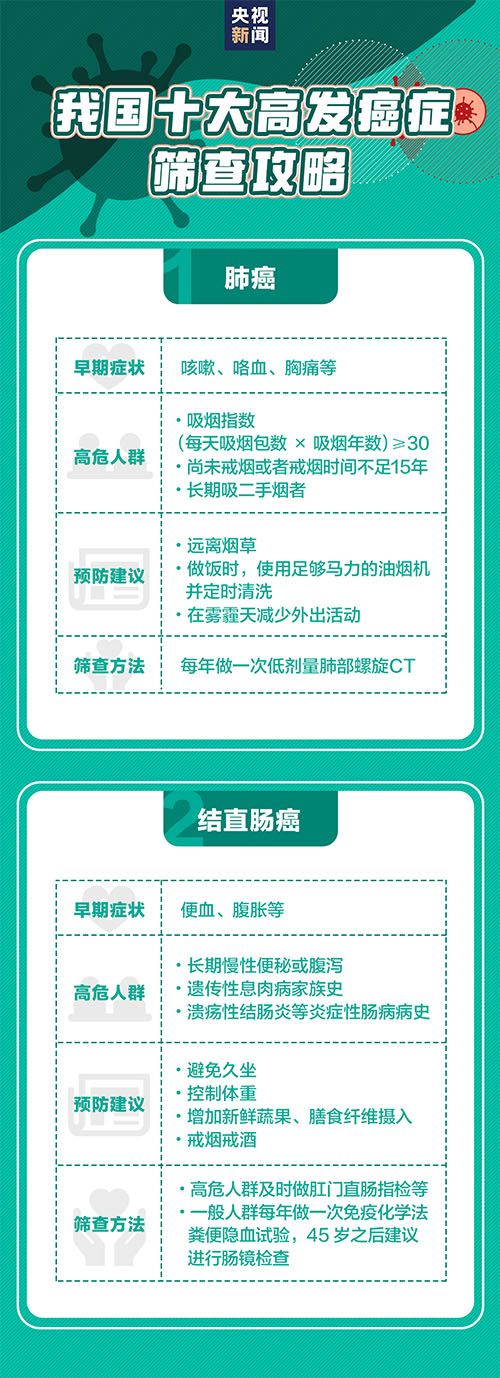 세계보건기구 통계에 따르면 2021년 전세계에는 2000만명이 암을 진단받았고 약 1000만명이 암증으로 인해 사망했다. 우리 나라 인구기초는 아주 방대한데 암증 신규발병수도 비교적 크다. 하지만 데터에 따르면 1/3 암증은 예방이 가능하다. 량호한 생활습관과 주동적인 검사는 ‘일찍 발견, 일찍 진료’을 실현할 수 있고 또 많은 암 발병인소를 멀리할수 있다. 아래 암증예방지침을 둘러보자.