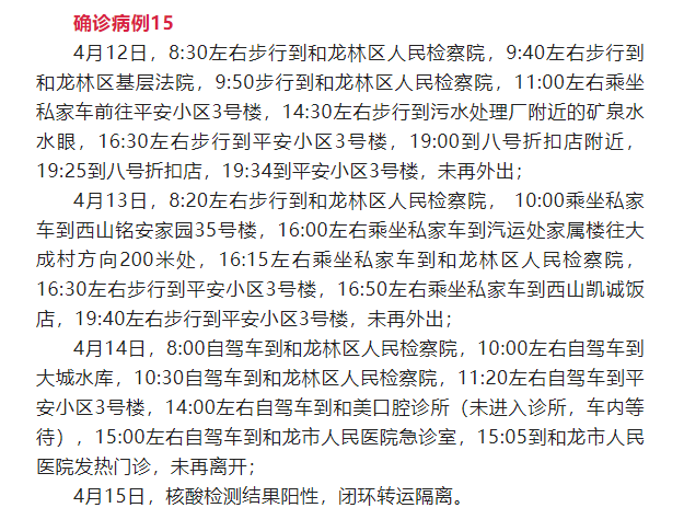 상술한 확진병례와 무증상 감염자의 이동경로와 겹치는 인원은 즉시 화룡시질병예방통제중심과 련계하고 관련 방역조치를 주동적으로 협조 시달해야 한다. 숨기거나 거짓 보고하면 법에 따라 해당 인원의 책임을 추궁하게 된다.
