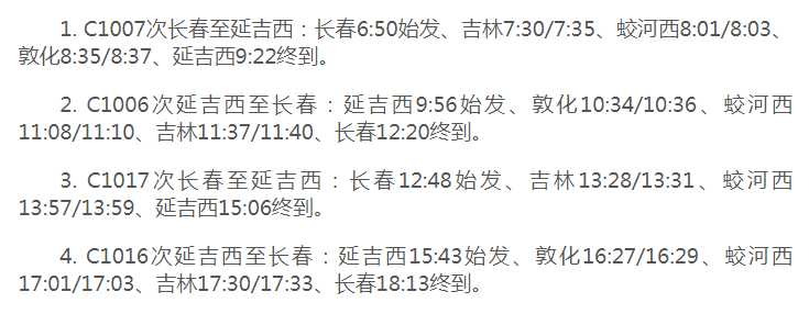 전염병 예방통제성과를 공고히 하고 정상적인 생산생활질서를 회복할 데 관한 길림성의 포치요구에 따라 중국철도심양국집단유한회사는 5월 8일부터 연길차무단 관할범위내의 려객렬차 2쌍의 운행을 회복한다. 구체 운행정황은 다음과 같다.