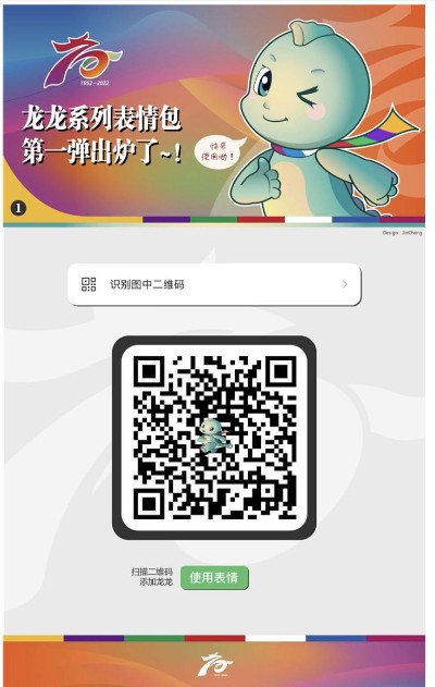 포스터속 QR코드를 스캔하면 ‘룡룡' 이모티콘을 원터치로 추가해 사용할 수 있다.이번에 업로드한 이모티콘은 총 24개로 모두 움짤이며 'Hello', ‘다음에 또 만나요!', ‘최고야!’, ‘사랑해~’, ‘좋아요!’등 다양한 이모티콘 짤이 망라된다.