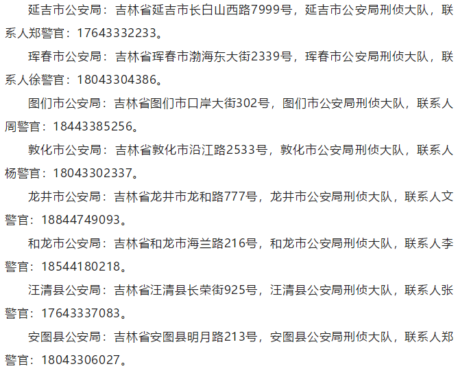왕청현공안국: 0433-8557682