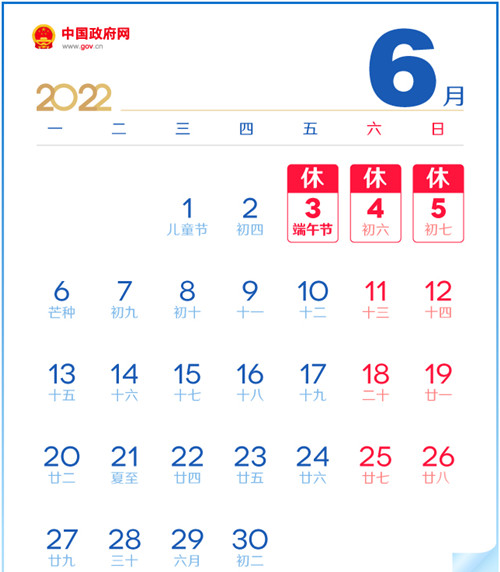 국무원은 일전에 <2022년 부분적 휴가일 배치에 관한 통지>를 발부해 단오휴가를 6월 3일부터 5일까지 총 3일로 배치했다. 이번 단오절은 휴가날자를 바꾸어 쉬지 않고 단오절 기간에도 고속도로는 무료통행을 실시하지 않는다.