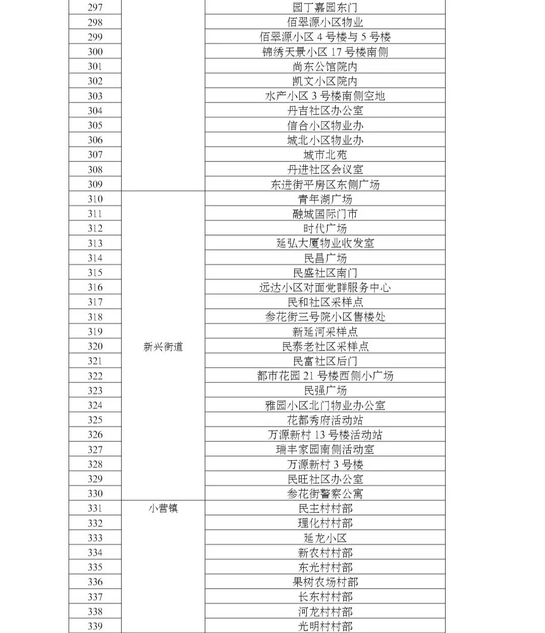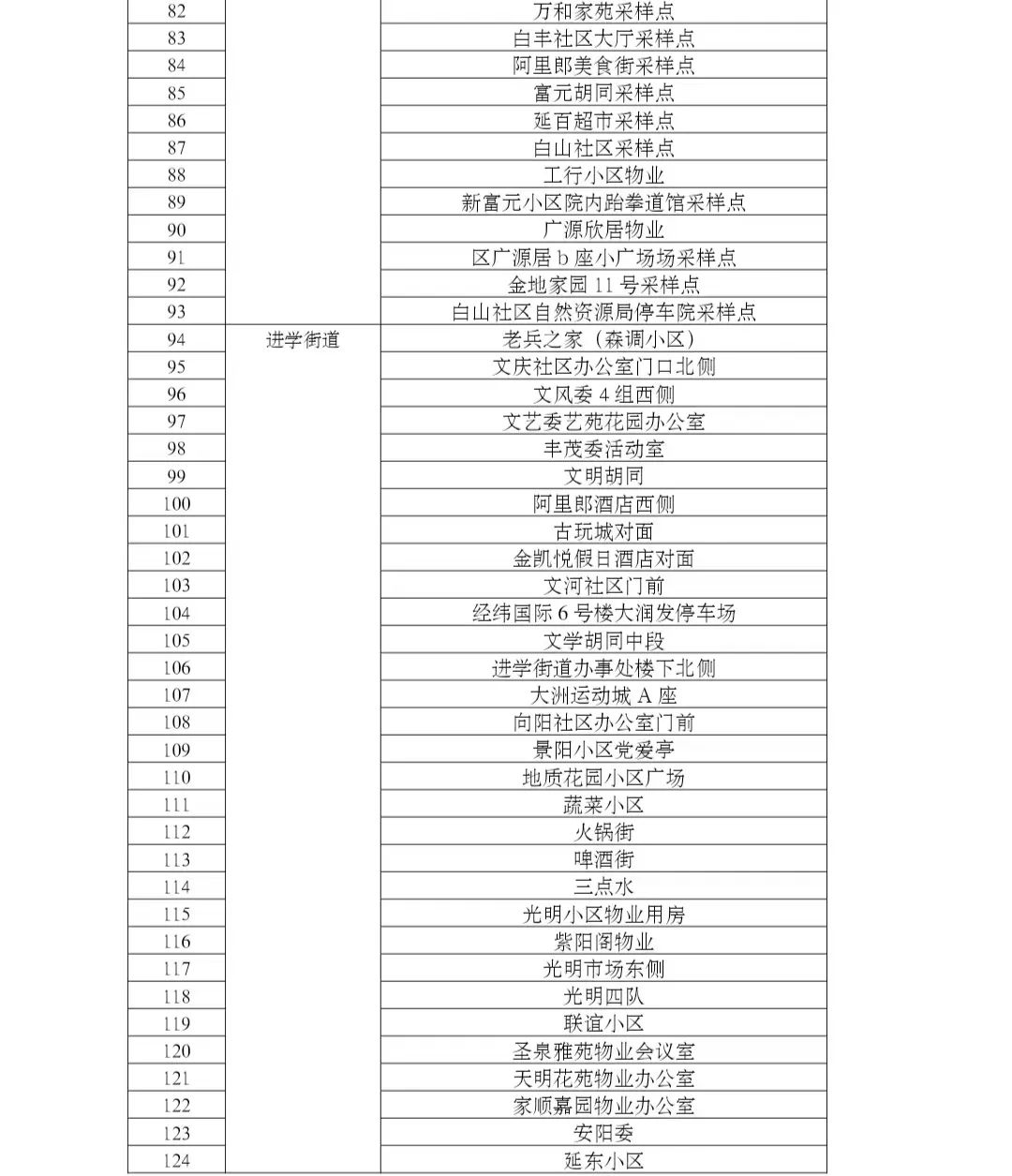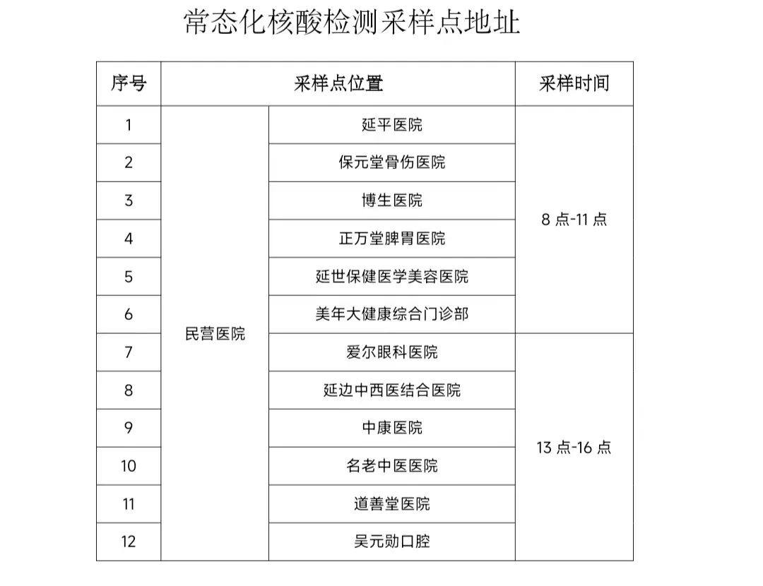 2022년 5월 24일, 5월 25일, 5월 27일, 5월 28일, 5월 30일 상시화 핵산검측 샘플채취지점(구체지점 부록2 참고)을 개방해 중점업종 중점군체에 핵산검측 샘플채취봉사를 제공한다.