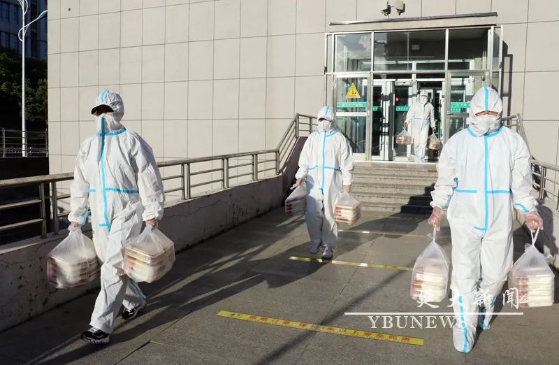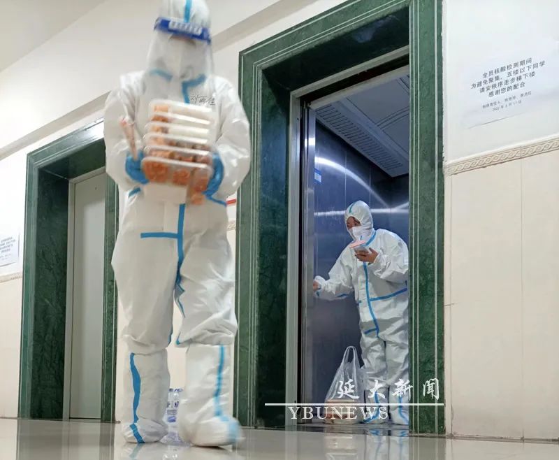 당원돌격팀이 식당에서 기숙사 아래까지 배송해주며