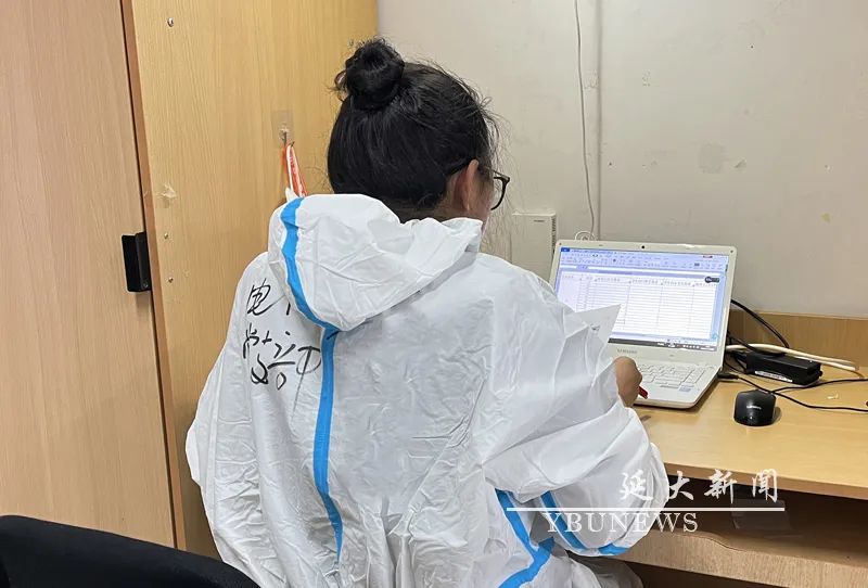 연변대학전염병예방통제사업지도소조 판공실 사업일군들이 매일 사업회보를 하고 있다.