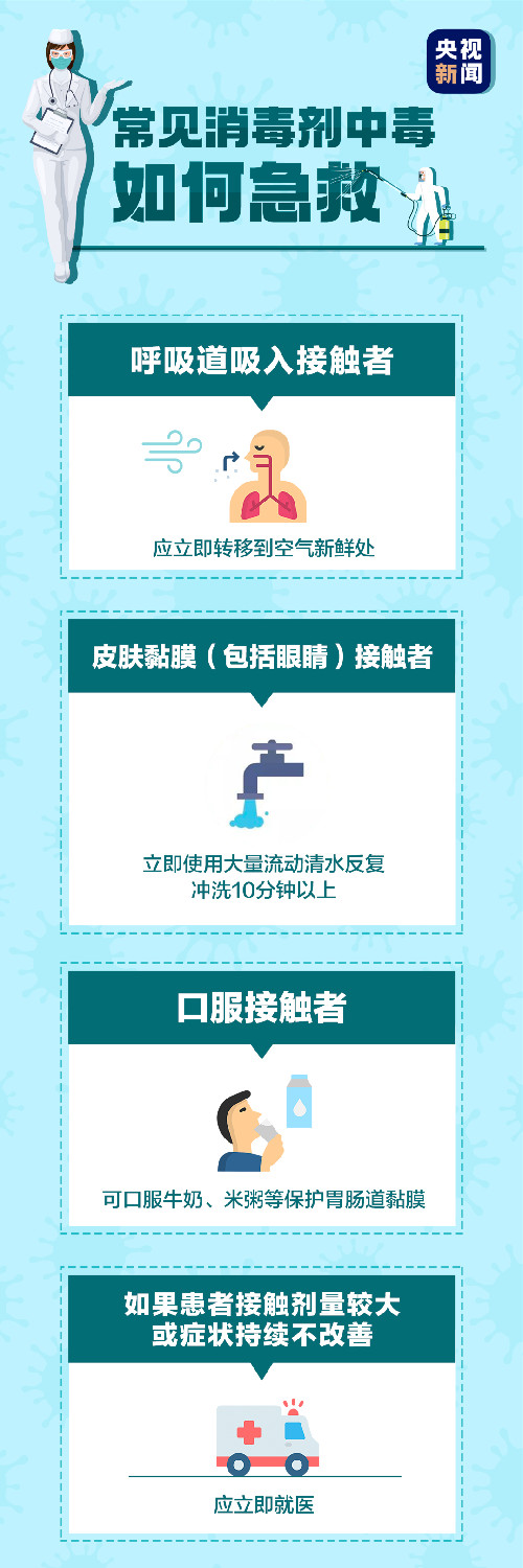 1.국무원 련합예방통제기제에서 2020년에 발부한 276호 <가을과 겨울철 신종 코로나 페염 의료구조사업방안>에서는 “소독수를 직접 사용해 인원들에 대한 소독을 진행하지 않는다”라고 규정했다.