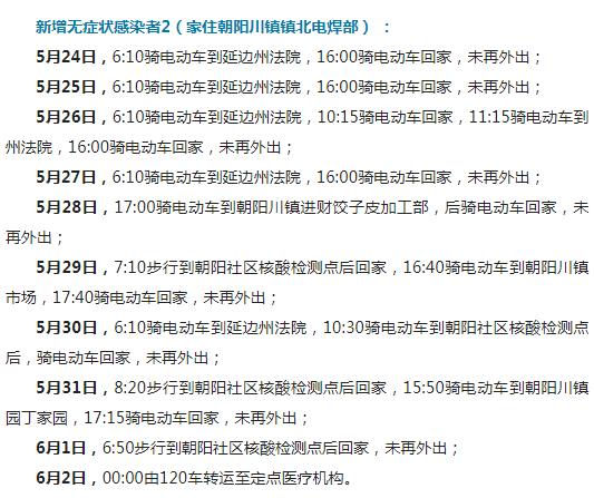 6월 2일 0-24시, 연길시에서 무증상 감염자 2명이 새로 증가되였다. 아래는 새로 증가된 무증상 감염자의 이동경로이다.