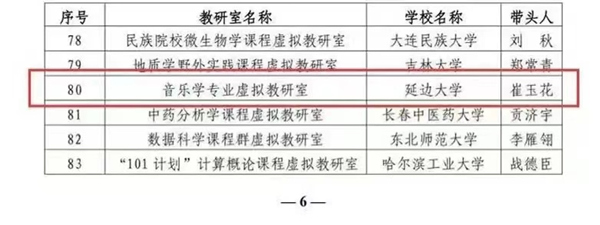 최근 교육부는 제2차 가상교연실건설시범명단 통지를 공포했는데 연변대학 최옥화 교수가 주재하는 음악학전공 가상교연실이 입선됐다.