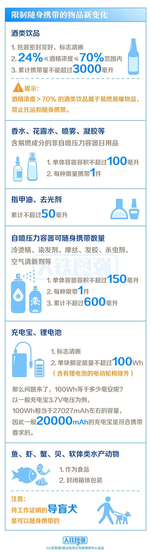 철도 려객이 휴대할 수 있는 물품에 변화가 발생했다! 2022년 7월 1일부터 국가철도국과 공안부의 새로운 규정을 따르는 바 최신 휴대품 규정을 시행한다. 아래에 어떤 다른점이 있는지 보자.