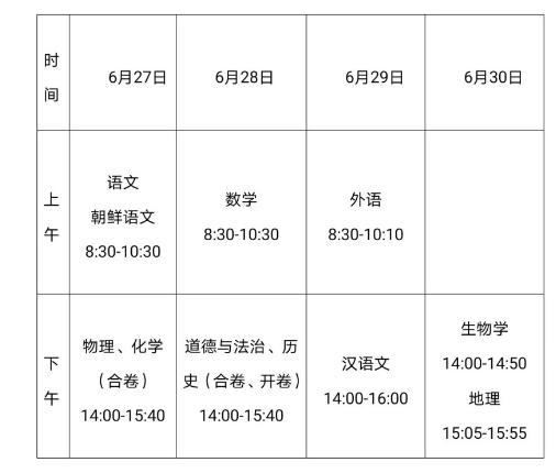 2022年吉林省中考时间