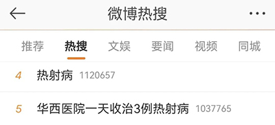지난 한주간 절강은 지속적인 고온날씨가 이어졌다. 절강 려수시중심병원은 2명의 ‘열사병’ 위독환자를 련이어 접수했는바 한명은 구급을 받았으나 사망했고 다른 한명은 여전히 의식을 잃은 상태이다. 홍성신문의 보도에 따르면 사천대학 화서병원은 7월 10일 3명의 열사병환자를 받아 치료했는데 그중 1명이 사망했다고 한다. 이 3명의 열사병환자는 모두 남성으로 나이는 각각 20여세, 40여세와 60여세라고 한다. 그중 젊은 환자 2명은 발병시 야외에서 근무하고 있었고 나이가 조금 많은 환자는 발병시 무더운 주방에서 료리를 하고 있었다.