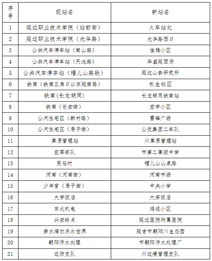 오늘(25일) 연길시공공뻐스집단유한회사에서 알아본 데 따르면 8월 1일부터 연길시 부분적 공공뻐스 로선을 조정하고 부분적 공공뻐스 정류장 명칭을 변경하게 된다고 한다.