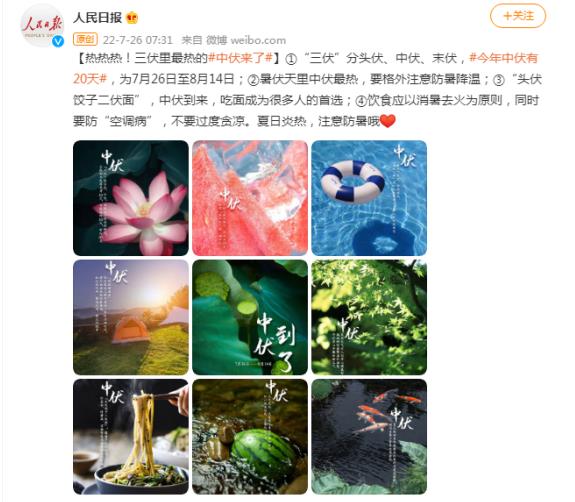 초복이 지속되는 시간이 10일로 정해졌기 때문에 올해 초복은 7월 16일부터 7월 25일까지이고 말복(삼복)은 립추후 첫번째 ‘경일’이다. 올해 립추는 8월 7일인데 첫번째 ‘경일(경자일)’이 8월 15일이므로 이날이 바로 말복이 시작되는 날이다. 말복의 지속시간도 10일로 고정됐기 때문에 올해 말복은 8월 15일부터 8월 24일까지이다. 초복과 말복 사이 기간이 바로 중복인데 어떤 해에는 10일이고 어떤 해에는 20일이다. 올해 중복은 20일로서 7월 26일부터 8월 14일까지이다.