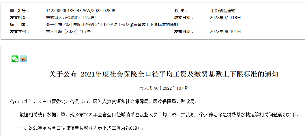 2021년도 사회보험 전반 통계범위내 평균로임 및 비용납부 기준수 상하한선 표준을 공포할 데 관한 통지