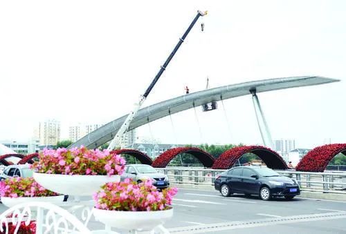 요즘 연길대교에서는 기중기와 시공일군들이 호흡을 맞춰가며 채색등 설치작업을 다그치고 있다. 참신한 이미지로 연변조선족자치주 창립 70주년 잔치를 맞이하기 위해서이다.