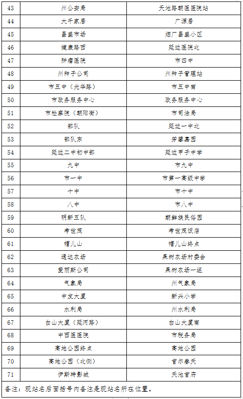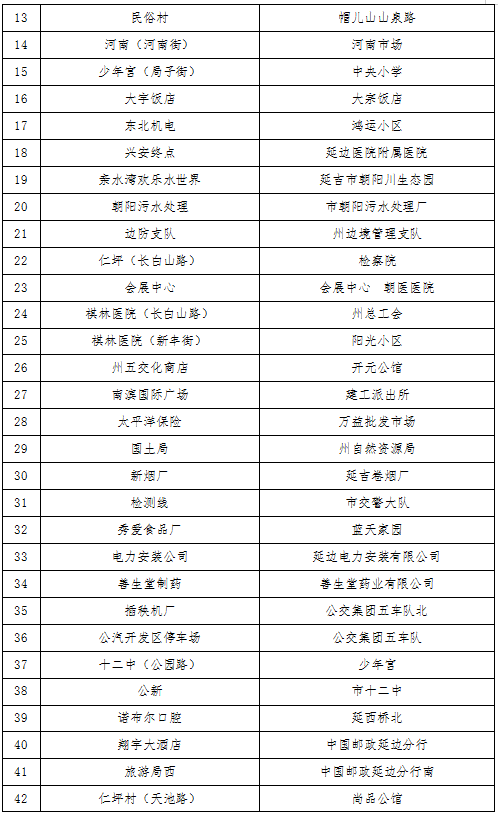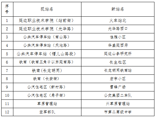 2022년 8월 13일부터, 연길시는 부분적 공공뻐스 로선을 조정하고 부분적 공공뻐스 정류장 명칭을 변경하게 된다.