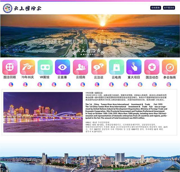 2022년 9월 2일부터 5일까지 제13기 두만강지역(연길) 국제투자무역상담회가 연길에서 개최된다. 료해에 따르면 이번 상담회는 온라인과 오프라인을 융합한 모식을 사용하여 온프라인실경전시, 온라인클라우드전시를 실현했다고 한다.