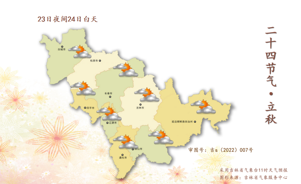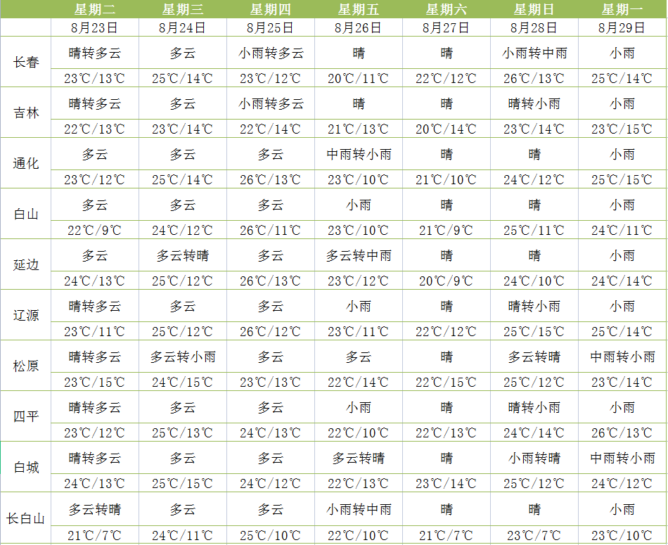 24일 밤부터 25일 낮까지 전 성 범위내에서 구름이 많고 백성, 송원, 장춘, 사평, 길림 서부에 소나기가 내릴 것으로 예상된다.