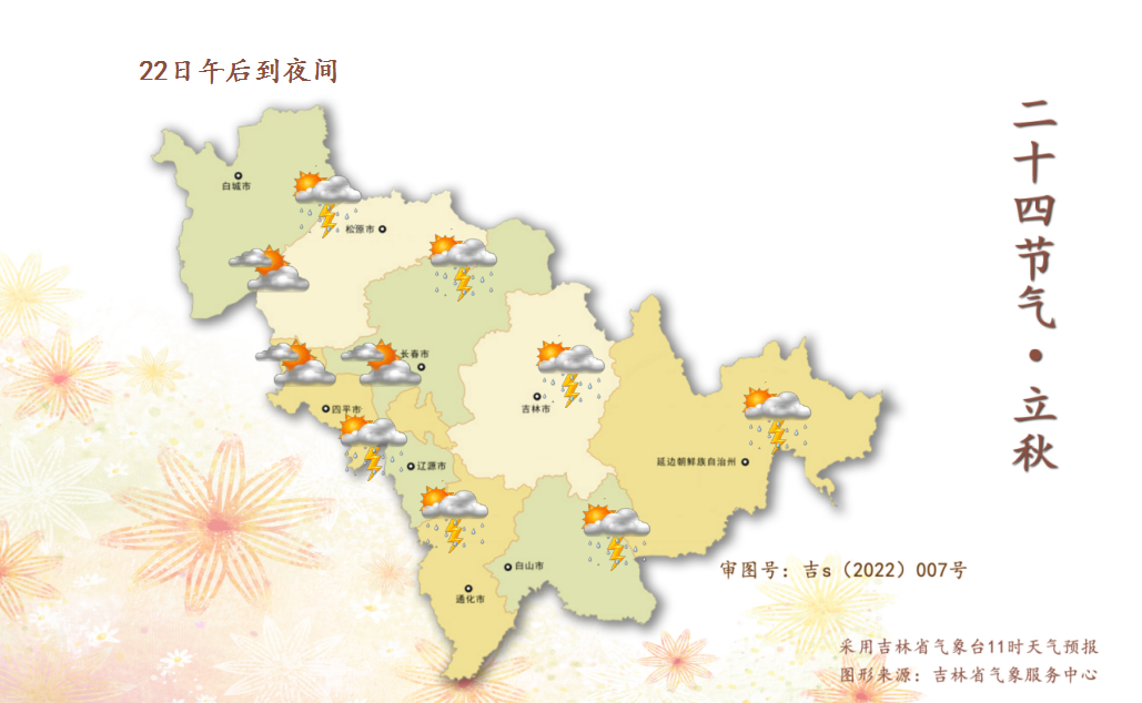 오늘 오후부터 밤까지 전 성 대부분 지역은 구름이 많고 백성 북부, 송원 북부, 장춘 북부, 사평 동부, 료원, 길림, 통화, 백산, 연변, 장백산보호구에 소나기가 예상된다.
