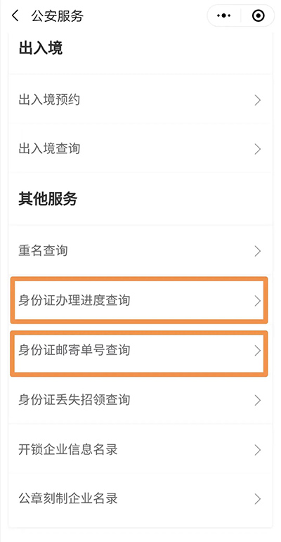 사용자는 ‘길사판’모바일판(미니응용프로그람, 앱)에 로그인하여 첫 화면 '주제서비스'에서 '공안서비스'를 선택하고 ‘기타 서비스’에서 ‘신분증 발급진도 조회’ 또는 ‘신분증 우편송장 조회’를 클릭한 후 관련 정보를 입력하면 취급진도를 조회할수 있다.