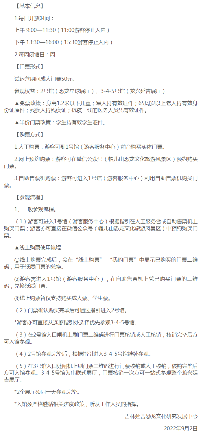 자치주창립 경축 휴가기간(9월 3일~5일) 연길공룡박물관은 정상 개방한다.