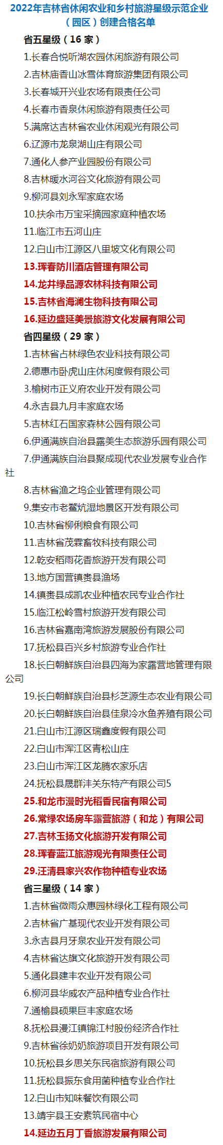일전 길림성농촌농업청이 2022년 길림성 레저농업과 향촌관광 성급시범기업(단지) 창건 합격명단을 발표했는데 우리 주에서 10개 기업이 입선됐다.