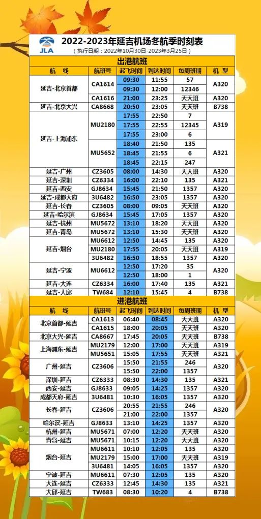 2022년 10월 30일부터, 전국 민간항공은 겨울철 항공편 계획을 집행하게 된다. 집행시간은 2022년 10월 30일부터 2023년 3월 25일까지이다.